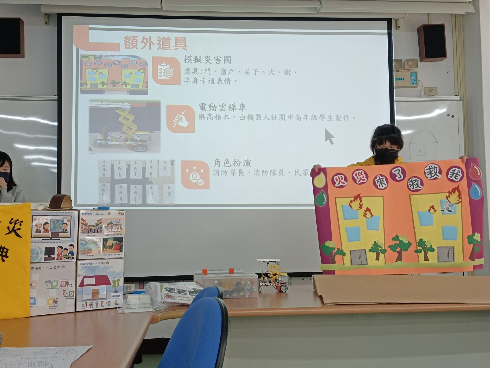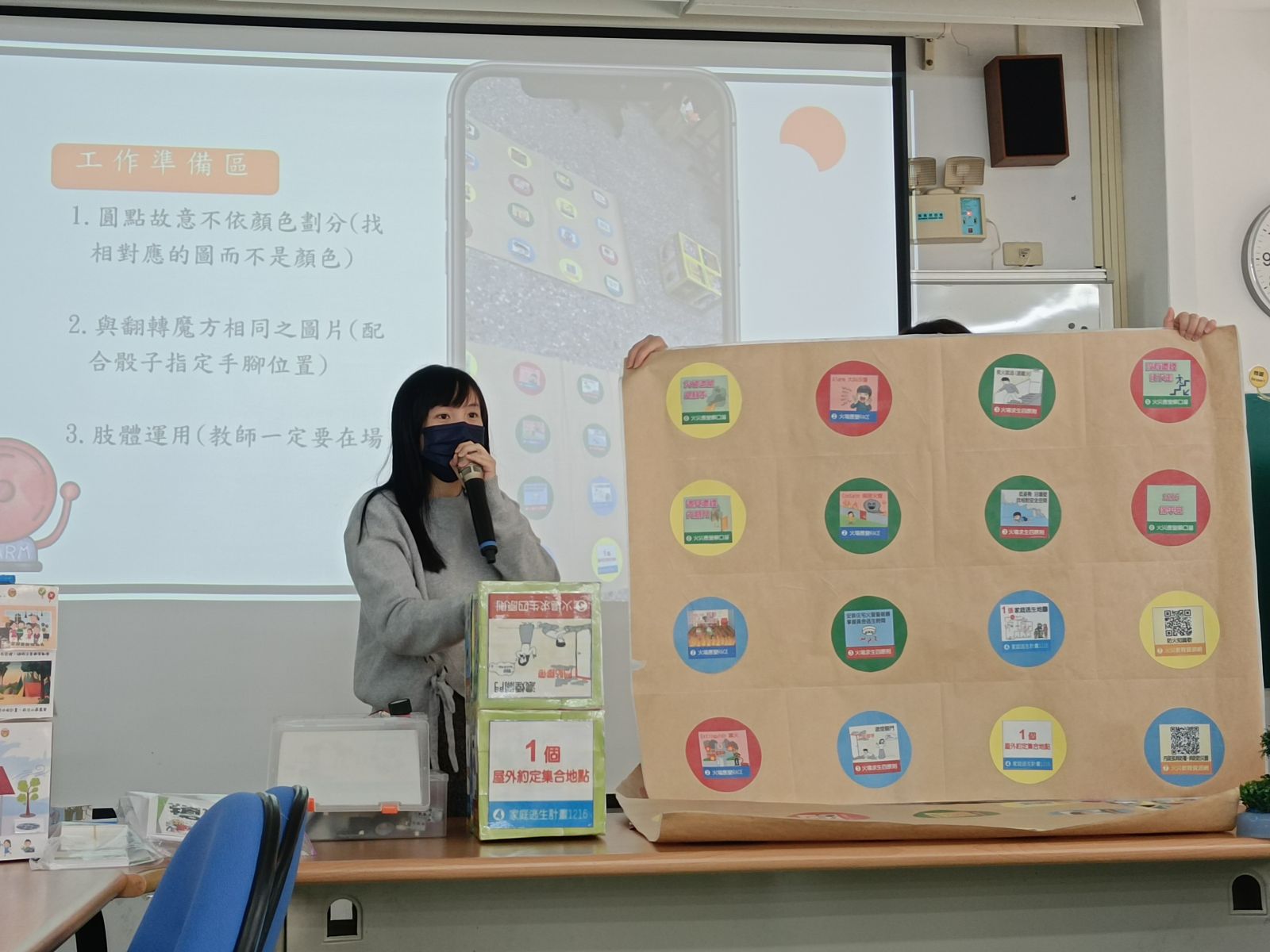 作品優點:火災魔方+扭扭樂,教具多元互動操作,已實際教學。